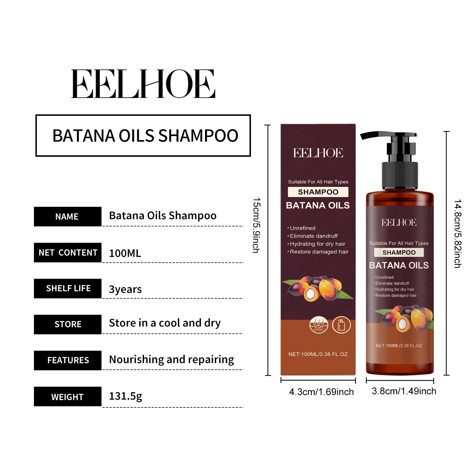 EELHOE Batana Shampoo Moisturizing, Repairing, Nourishing, Smoothing Dry and Frizzy Hair, Oil Control Shampoo
