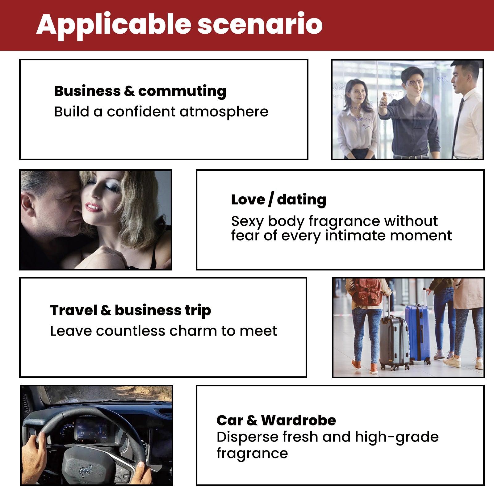 Our Concentrated Perfume Oil Contains Patchouli Oil, Clary Sage Extract, Lavender Oil. It can have a lasting fragrance, relax the mind and body, showcase artistic personality, meet various needs, and shorten the distance between each other. Its usage method is very simple: apply this product directly on wrists, behind ears, neck, and other desired areas for fragrance retention; naturally, it will emit an enchanting scent. And it can maintain a long-lasting fragrance.
