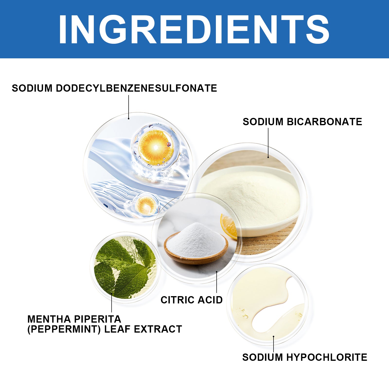Our washing machine cleaning effervescent tablets are carefully formulated with citric acid and sodium hypochlorite. Designed to easily break down various stains. The usage method is extremely convenient: 1. Empty the water in the washing machine. 2. No need to disassemble the washing machine, add 1 washing machine cleaning tablet and start a complete washing cycle. 3. After the washing process is completed, you can clean the base slot of the washing machine. It can effectively decompose grease without leaving any residue, improving the cleaning efficiency of the washing machine.