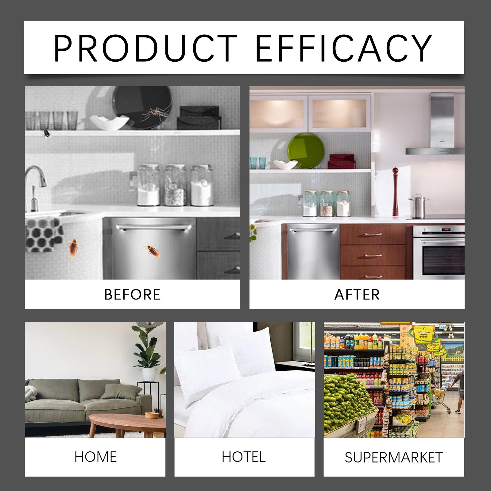 Our cockroach bait station is carefully formulated with imidacloprid and 1,2-hexanediol. Designed specifically for quickly killing cockroaches, extremely convenient to use: 1. Cut off the bottom of each cockroach sticker bait. 2. Peel off the cockroach sticker. 3. Tear off the double-sided tape at the bottom and stick it in a hidden area where cockroaches often appear or reside. And it uses a gentle formula suitable for use in various settings such as home and office.