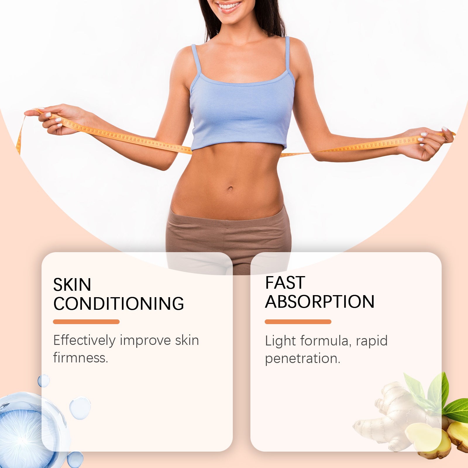Our Ginger Firming Cream contains ginger root extract, hyaluronic acid, and Garcinia Cambogia extract. It can effectively improve skin firmness. Its usage method is very simple: clean and dry the skin, apply an appropriate amount to areas such as arms, abdomen, and thighs, gently massage in circular motions to promote absorption. And it uses a lightweight formula for quick absorption.