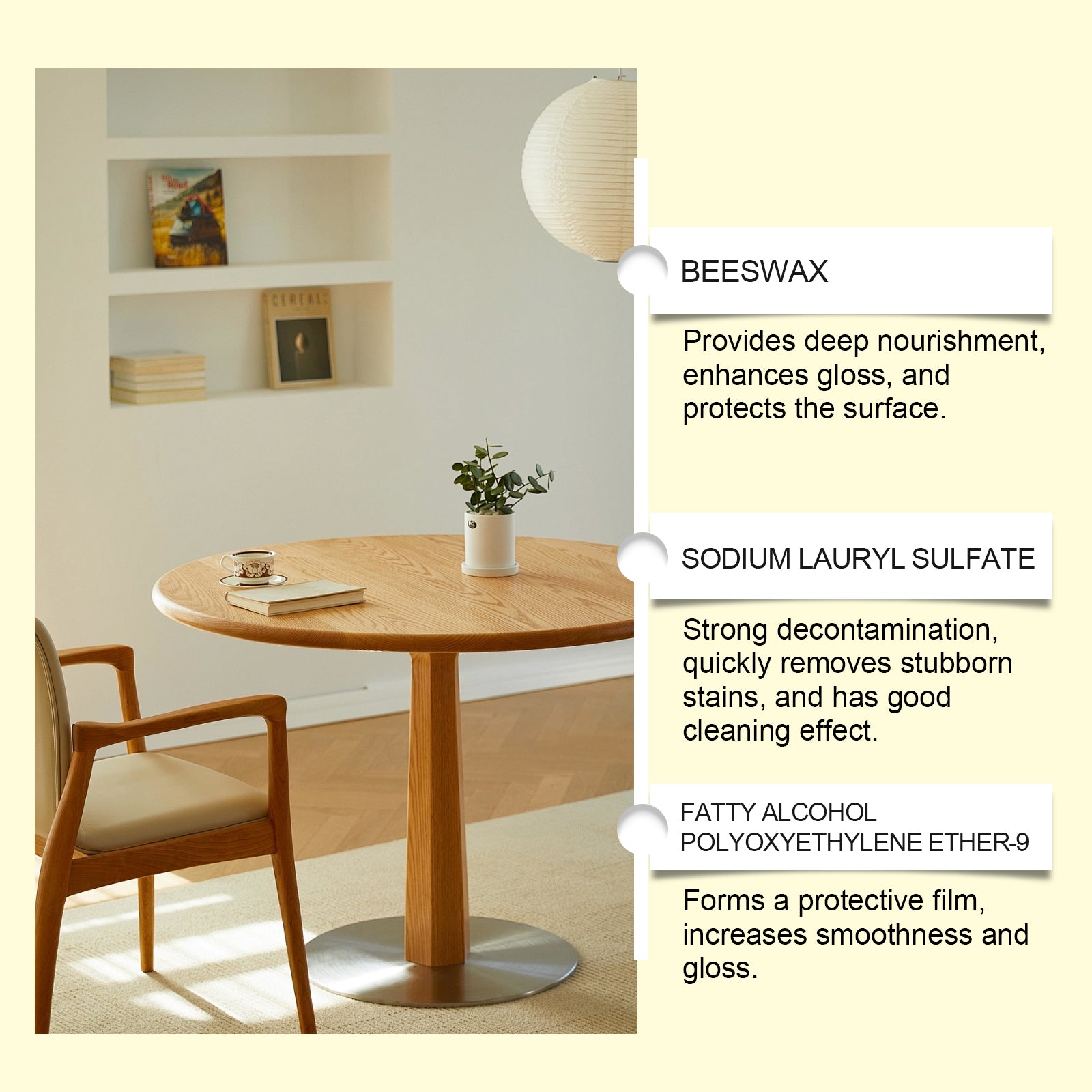 Our beeswax spray contains citric acid, beeswax, and honey extracts. It can restore shine and beauty to wood, remove dust, oil stains, dirt, and wear easily and quickly. It can also be used on other wooden furniture. Its usage method is very simple: clean and scrub the furniture. Spray the product on the furniture and apply evenly. After the wax dries for about 30 minutes, wipe repeatedly until polished. And it can care for the floor.