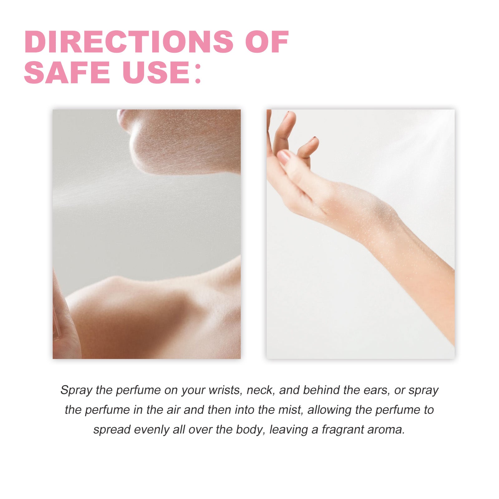 Our pheromone perfume (rose scent) contains muskgrass extract, jasmine extract, and tea extract. It can make the fragrance lasting, deepen charm, enhance attractiveness, and the scent disperses quickly, suitable for any occasion. Its usage method is very simple: spray the perfume on your wrists, neck, and behind your ears, or spray it into the air and then mist it to spread the fragrance evenly across your body, leaving a fragrant aroma. Pheromone perfume (rose flavor) releases a charming aroma that keeps the body smelling fresh all day long.