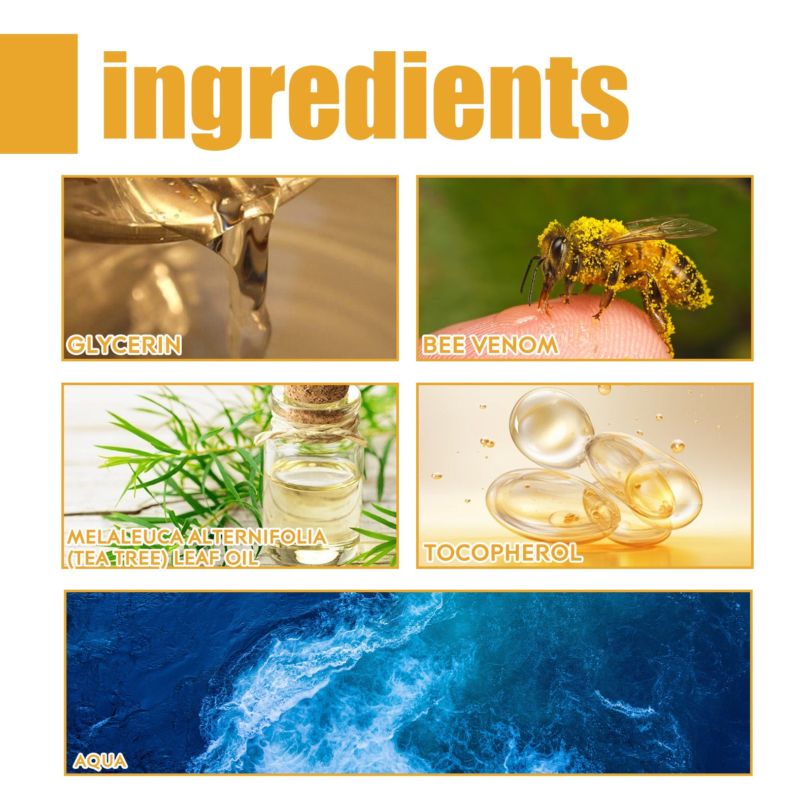 Our Bee Venom Wart Treatment Spray contains bee venom and Melaleuca alternifolia oil. It can lighten spots, even out skin tone, repair damaged skin, and make skin softer and fairer. Its usage method is very simple: 1. Clean and dry the skin. 2. Spray directly on the affected area with a sprayer. 3. Gently massage until absorbed. It can also remove skin tags or warts, stimulate tissue regeneration and accelerate healing processes, and prevent post-extraction infection.